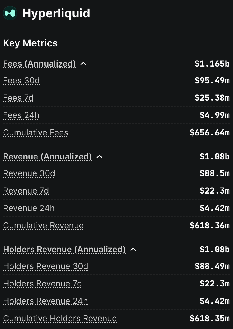 Over the last 30 days or so, Hyperliquid generated approximately $88.5m of revenue (≈US$1.08bn annualised), putting it broadly in line with Nasdaq’s Market Services net revenue of about $102m per month in Q2-2025. But Hyperliquid achieved it with just ~11 core contributors, which equates to roughly $100M of revenue per employee, the highest for any company. Hyperliquid delivers on-chain trading speeds once thought impossible, while handling tens of billions in daily volume—all while remaining non-custodial and community-owned.