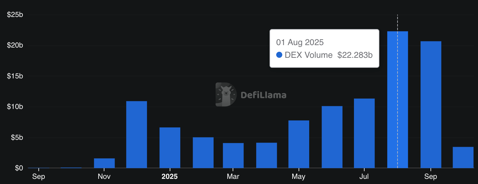 For much of 2024 and early 2025, Hyperliquid was the undisputed leader in decentralised derivatives. By mid-2025, it commanded around 70% of the market share in perpetual DEX trading. Daily volumes of $10B+ on Hyperliquid became routine, dwarfing other on-chain competitors. Hyperliquid’s combination of deep liquidity, many trading pairs, and a strong reputation made it the go-to venue for serious traders seeking a DeFi alternative to the likes of Binance or Bybit.
