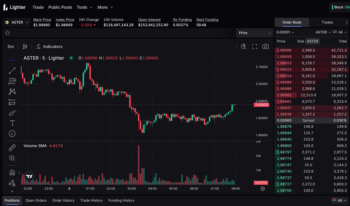 The competitive dynamics now resemble a three-way race (Hyperliquid, Aster, Lighter). Each offers distinct trade-offs: Hyperliquid = pure performance and deep liquidity (the “CEX experience on-chain” pioneer), Aster = cross-chain convenience and novel assets but possibly incentive-driven volume, Lighter = max decentralisation/trust with innovative tech but early-stage. It’s a healthy competition, as each is pushing the others to improve.