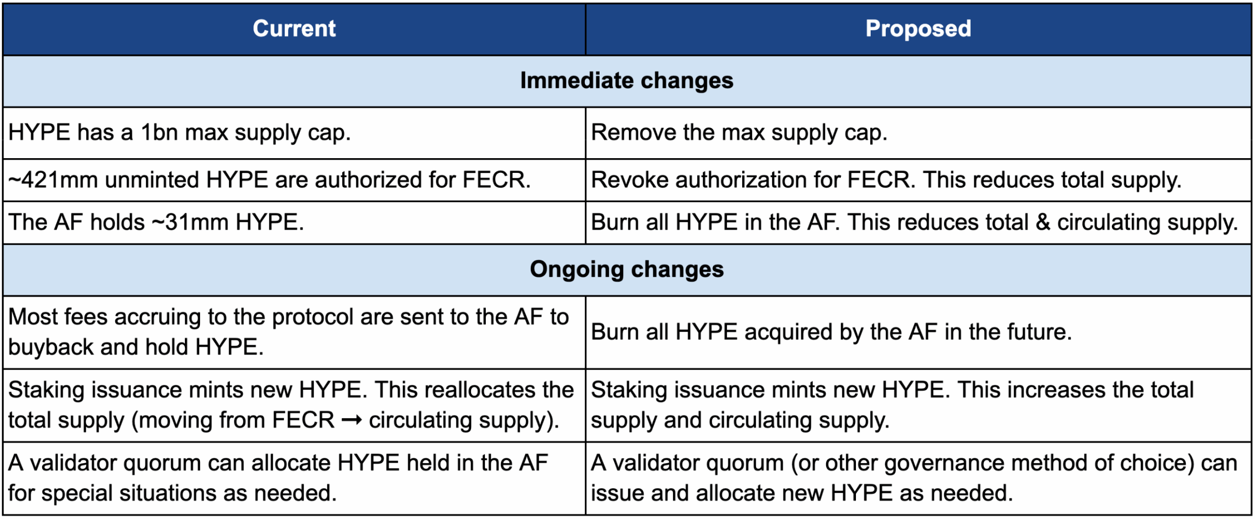 Supporters argue this would instantly right-size HYPE’s valuation metrics, making it more palatable for institutional investors. It would also cement HYPE’s scarcity, since essentially all “hidden inflation” gets nixed, and future emissions could be governed more transparently. On top of that, the proposal points out that organic burn mechanisms (trading fee buybacks, HyperEVM gas burns, etc.) are already reducing supply gradually. This one-time cut would be like a decisive accounting cleanup, echoing moves like Ethereum’s EIP-1559, which made ETH deflationary.